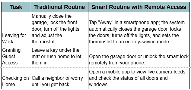 Remote control features allow you to manage daily tasks from anywhere. Through smart home apps, you can confirm the garage door is closed, unlock doors for guests, adjust the thermostat, or turn lights on and off. This saves time, reduces worry during busy days, and keeps your home running smoothly.